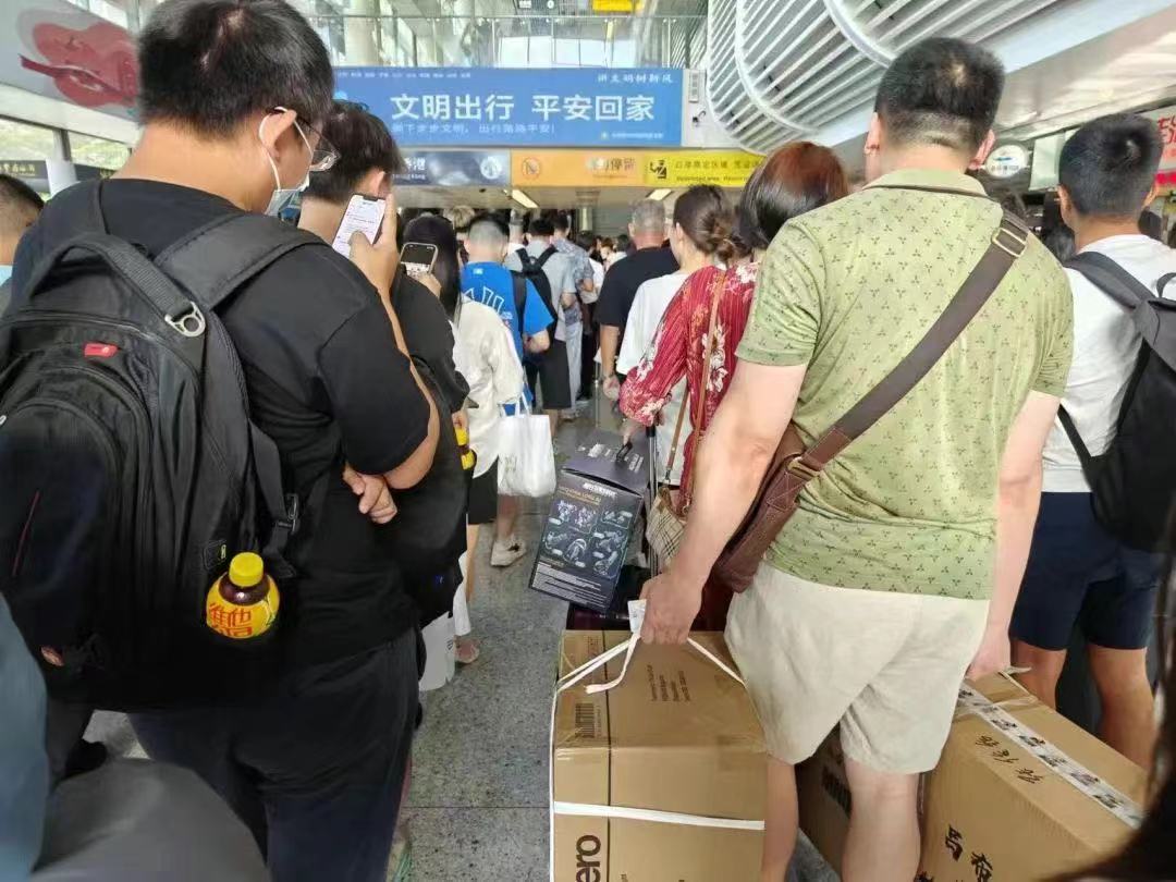 以往从香港带货回内地较为流行,近期情况则开始出现“逆转”。面对大量香港客流,深圳各大商圈也推出不同的活动,助推这一波消费潮流。图为8月4日下午,不少人携带在深圳采购的商品返港。《财经》记者 焦建/摄