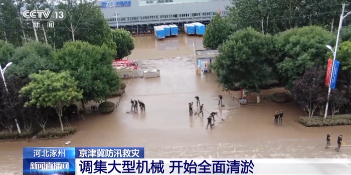 今天上午,央视新闻记者在河北涿州的高新技术产业开发区看到,武警河北总队采取机械和人工作业相结合的方式开展集中清淤工作。
