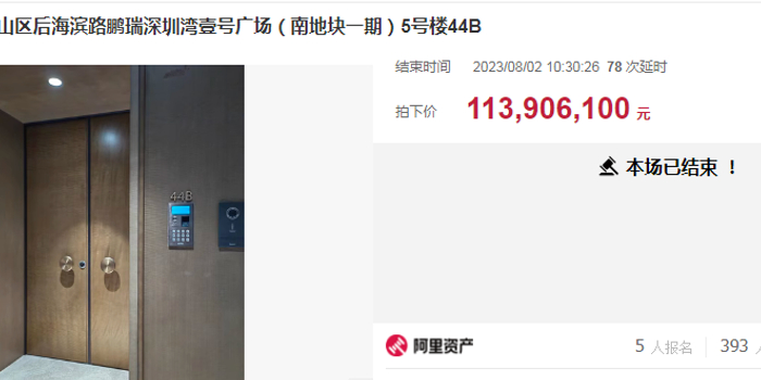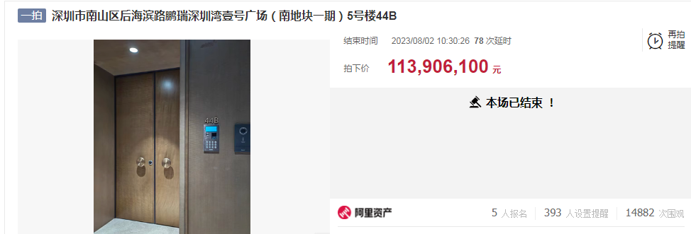 单价26万/平,总价1.14亿!深圳知名豪宅法拍房成交