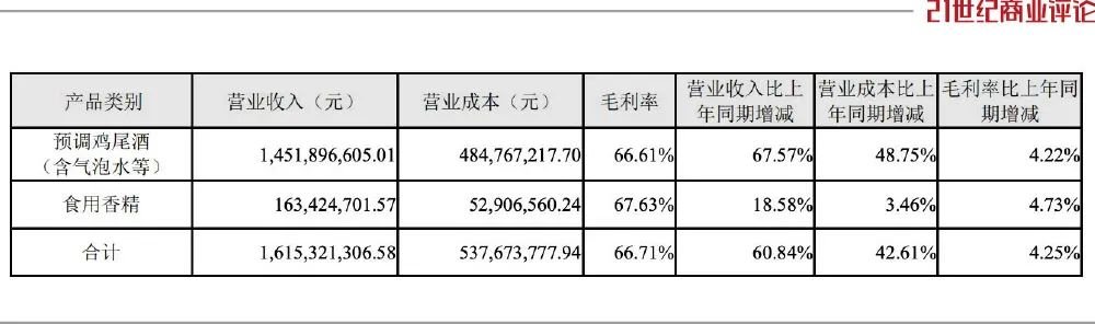 上半年,预调鸡尾酒的毛利率为66.61%。