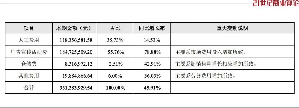 上半年,百润销售费用3.31亿元,其中超过一半用于广告宣传,同比增长78.88%。