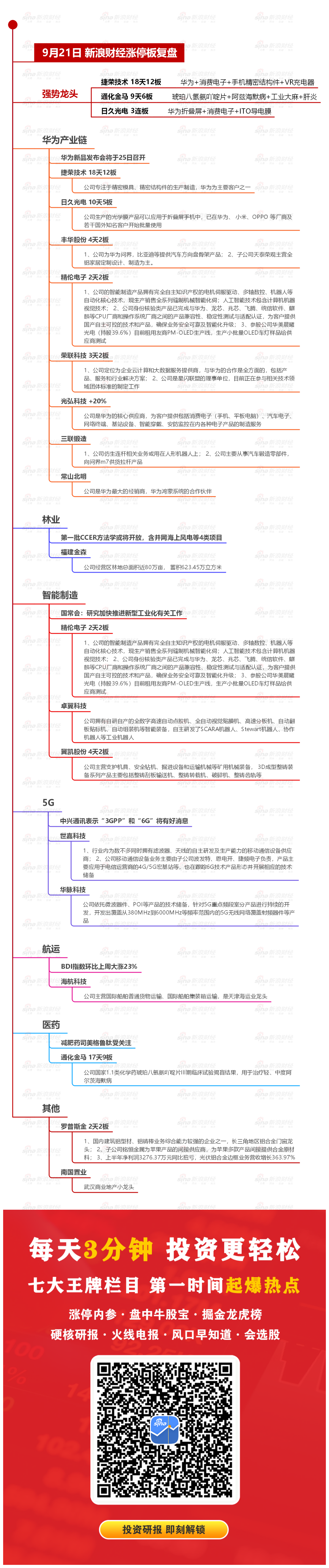 【9月21日沪深两市涨停分析】深成指跌0.9%失守10000点关口,华为产业链逆势走强。捷荣技术录得18天12板,通化金马走出9天6板,日久光电3连板,一图看懂>>