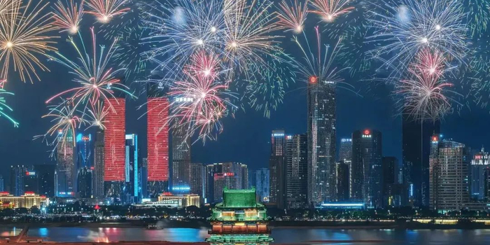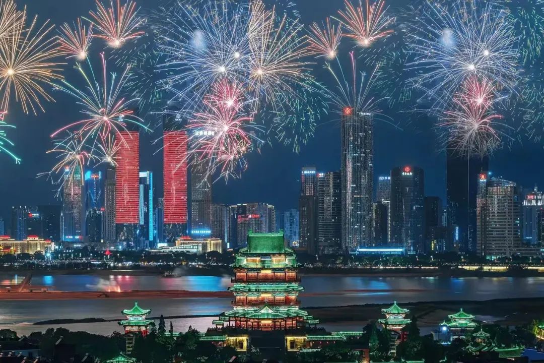 今年国庆之夜,老官洲江面升起漫天华彩,南昌用盛大的焰火晚会为祖国庆生。现场观众数十万人次,直播观众千万人次,一场烟花之约直接把节庆氛围拉满。