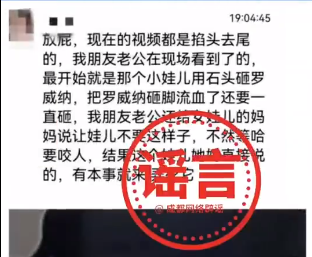 有传言称是小女孩先攻击狗,导致被报复,甚至有聊天截图显示“我朋友老公在现场看到的,最开始就是安格小娃儿用石头砸罗威纳,把罗威纳砸流血还要一直砸”。对此当地街道工作人员回应称,这系谣言,不属实。