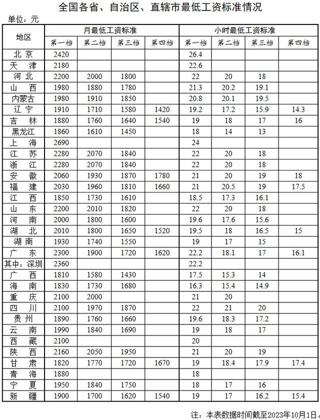 最低工资标准情况