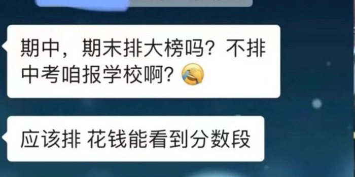 家长称“不花钱看不到排名” 。 网络截图