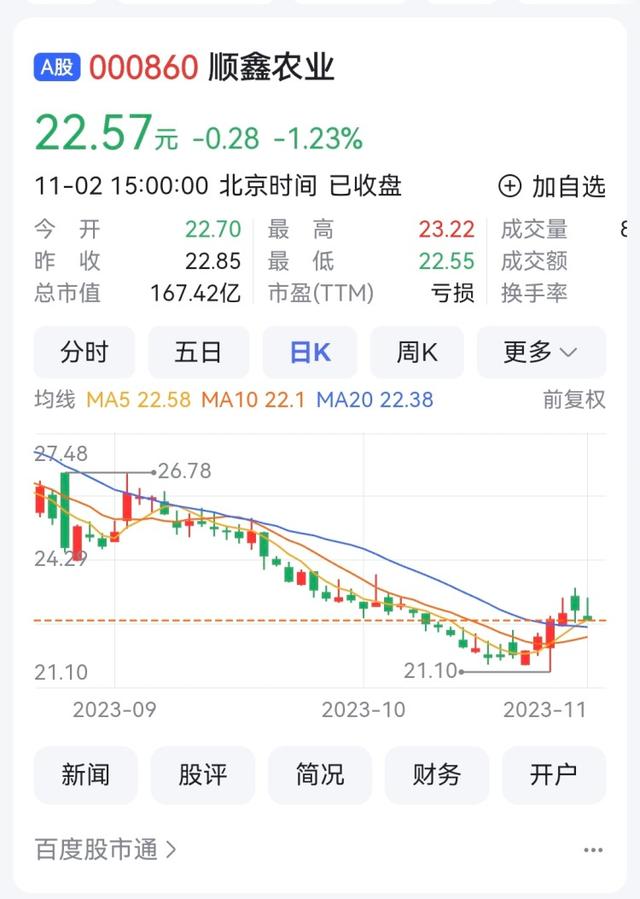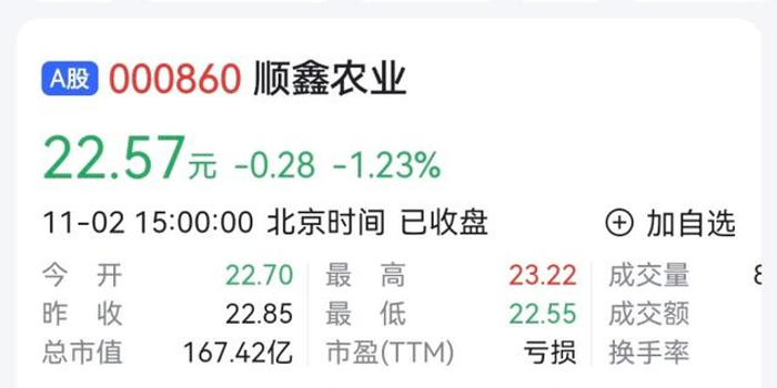 顺鑫农业2023年前三季度营收88.07亿元,同比下滑3.28%;净利润亏损2.92亿元,同比去年下降1159.20%;每股亏损0.39元。