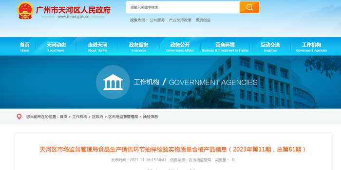 广州市天河区市场监管局食品生产销售环节抽样检验实物质量合格产品信息(2023年第11期,总第81期)