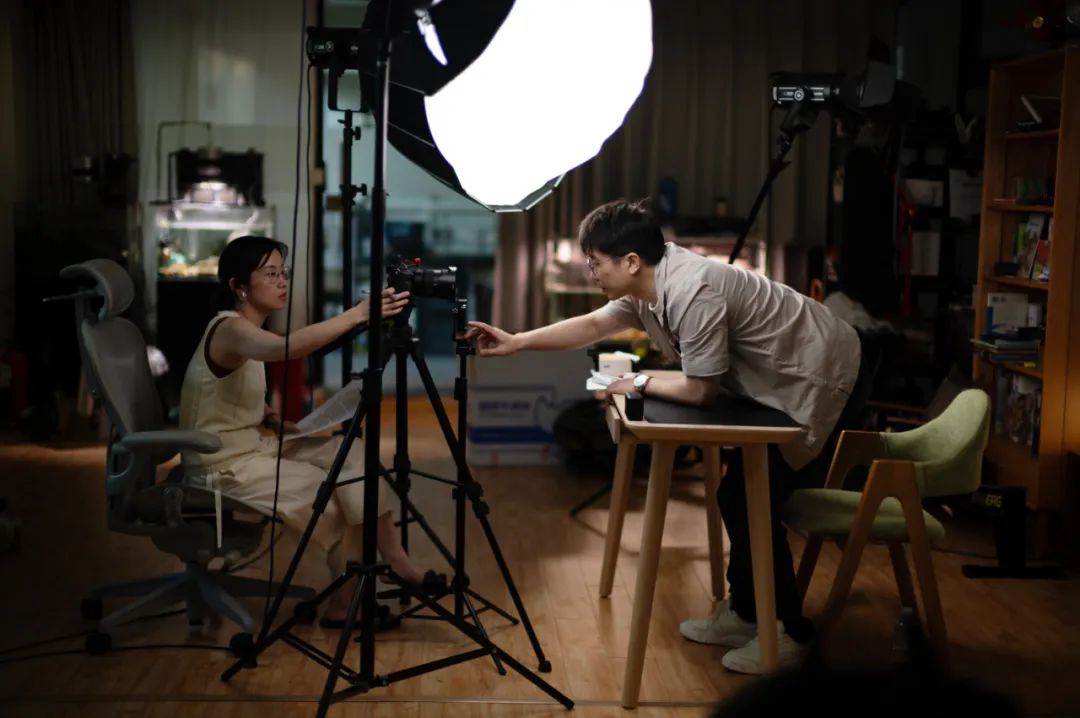 夜色渐沉,G僧东的工作室变成了摄影棚。B站社交媒体运营分享的课程准备开拍。