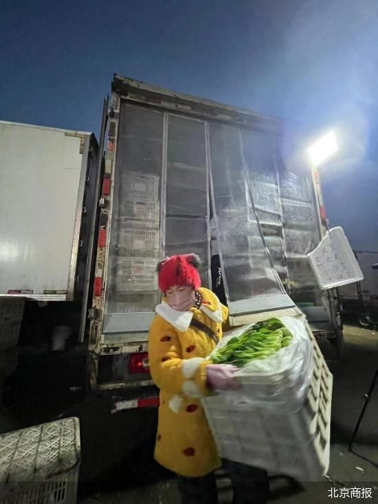 在降温的情况下,蔬菜保存受到挑战。张月琳表示,商户给蔬菜覆盖棉被保温,在摆摊售卖的过程中同样可以保证一定的温度。同时,摆摊销售车辆都安装了门帘,保证车厢内的温度。蔬菜通过冷链车运输到北京,恒温运输有助于蔬菜存储。