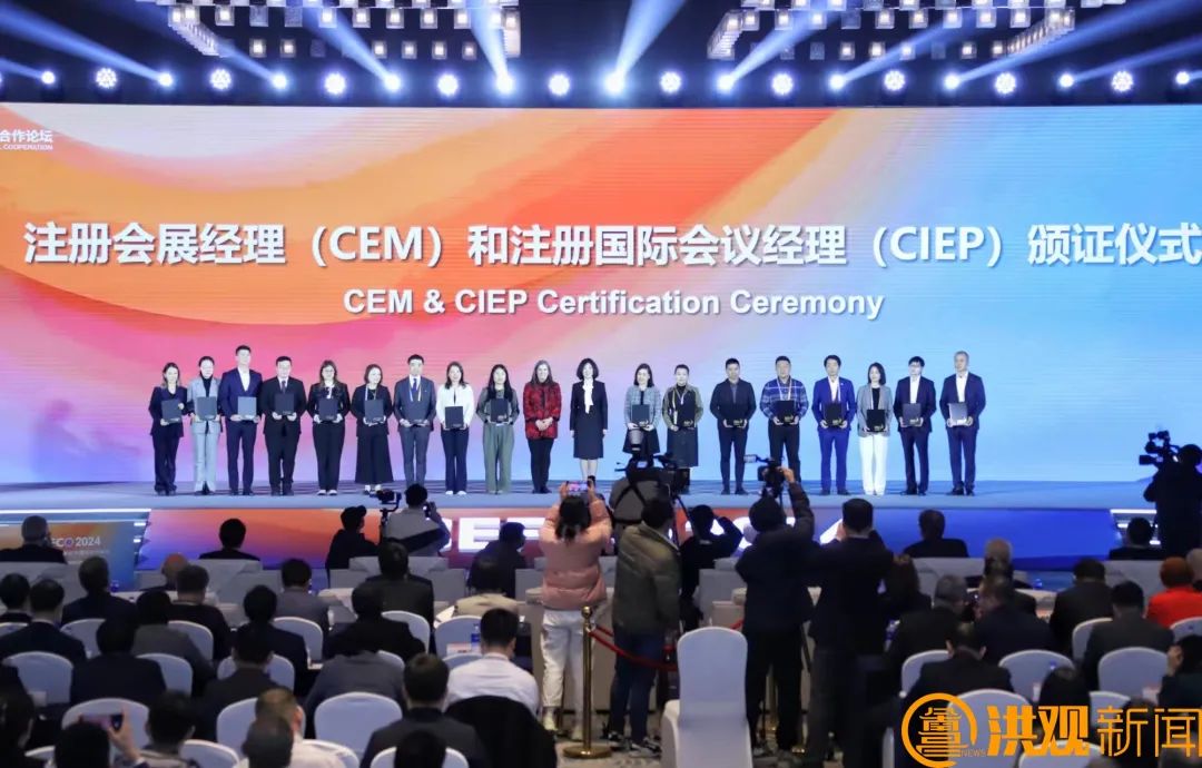 会上,中国畜牧业协会、中国教育装备行业协会、中国体育用品业联合会、中国奶业协会、法国智奥会展(上海)有限公司、广东鸿威会展集团、上海华墨展览集团、北京世信国际会展集团等知名组展企业22个会展项目将落户南昌。期间,还举行了注册会展经理(CEM)&注册国际会议经理(CIEP)颁证仪式。