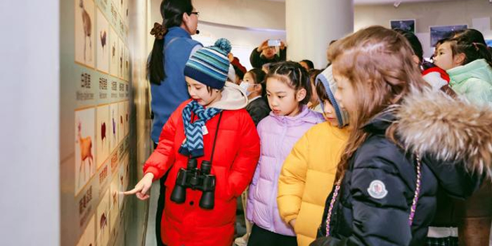 北京麋鹿生态实验中心展览部部长胡冀宁带领小朋友们一起走进麋鹿传奇展,一幅麋鹿与梅花鹿、老虎、亚洲象等动物共同生活在华夏大地上的画作映入眼帘,绿意盎然的场景勾勒出一派繁荣的生态景象。
