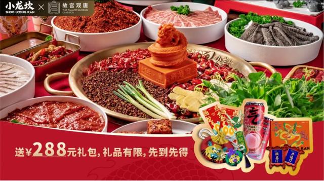 今年春节之际,小龙坎火锅与故宫观唐合作,推出联名欢聚4人餐、6-8人餐。值得一提的是,购买288元4人餐或478元6-8人餐,赠送价值288元/498元的小龙坎 X 故宫观唐 文创限量礼包(礼品有限,先到先得)!