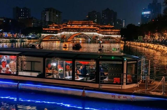 今年春节,夜游锦江耍法又上新!创新推出蜀味锦江水上主题火锅船,将成都美食界的王者——火锅搬到锦江之上,再佐以巴蜀文化主题演绎,让游客在夜游锦江中品美食、看演出、赏美景。火锅船将于龙年春节正式开始运营,计划每晚两班,于每晚18:00和20:30定点发船,全程90分钟,游客可根据自身需求选择2—6人火锅套餐。