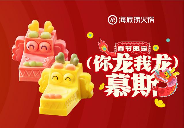 海底捞的限定新品“龙”重登场好欢乐!新年就要换新装,4款龙年春节新品揭晓:你龙我龙慕斯、蒸奇斗艳花馍、新造型的“龙年限定”莓莓抹茶牛乳、福鱼籽福袋,快来海底捞吃火锅,感受新年氛围!