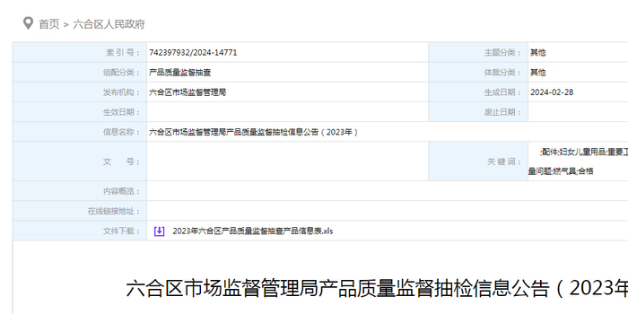 六合区市场监督管理局产品质量监督抽检信息公告(2023年)