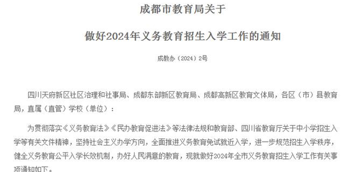 接着,我们再来说说,在每年公布的入学政策里,有哪些家长们必须了解的内容(需要阅读原文的家长,可戳链接:《成都市教育局关于做好2024年义务教育招生入学工作的通知》)。