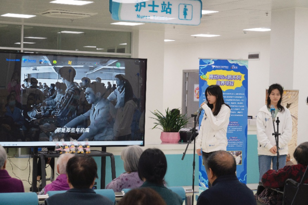 腾讯Mini鹅的青少年为白云区石井人民医院的老人们演唱自己创作的“老歌新编”音乐