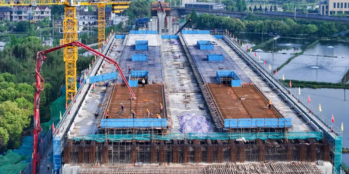 4月18日,位于德清县下渚湖街道,杭德市域铁路八字桥站主体结构历时205天施工,顺利封顶。这是杭德市域铁路全线完成结构结顶的首座高架站,为后续的机电安装及站房装修工作打下了坚实的基础。