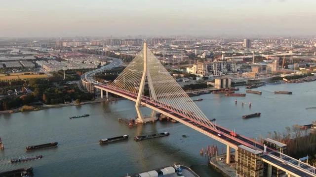 闵浦二桥也是目前国内跨度最大的公轨双层斜拉桥,是连接闵行与奉贤的重要通道。