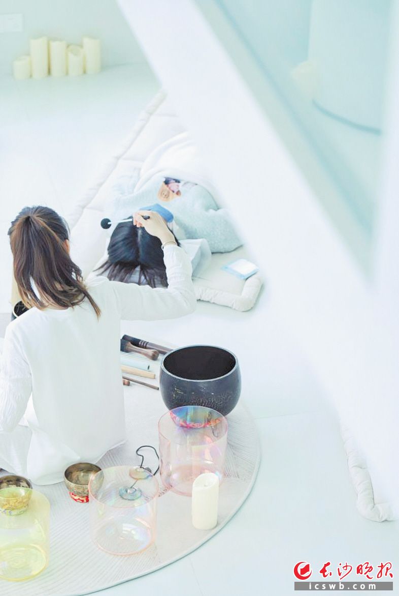 今年28岁的杨女士在长沙一家企业从事行政工作,每到中午,她就因午休而犯难。公司离家远,中午回家休息费事又折腾;留在公司,办公室里又没有专供午休的地方。一次偶然的机会,她接触到了颂钵音疗,便成为她午间休憩的好去处。