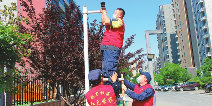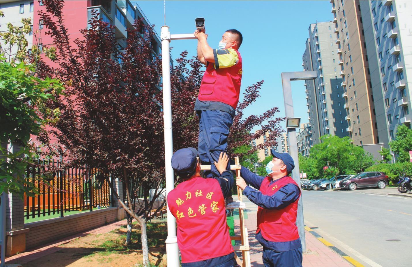 甘井子区辛寨子街道魅力社区“红色管家”及时对故障监控设备进行维修。