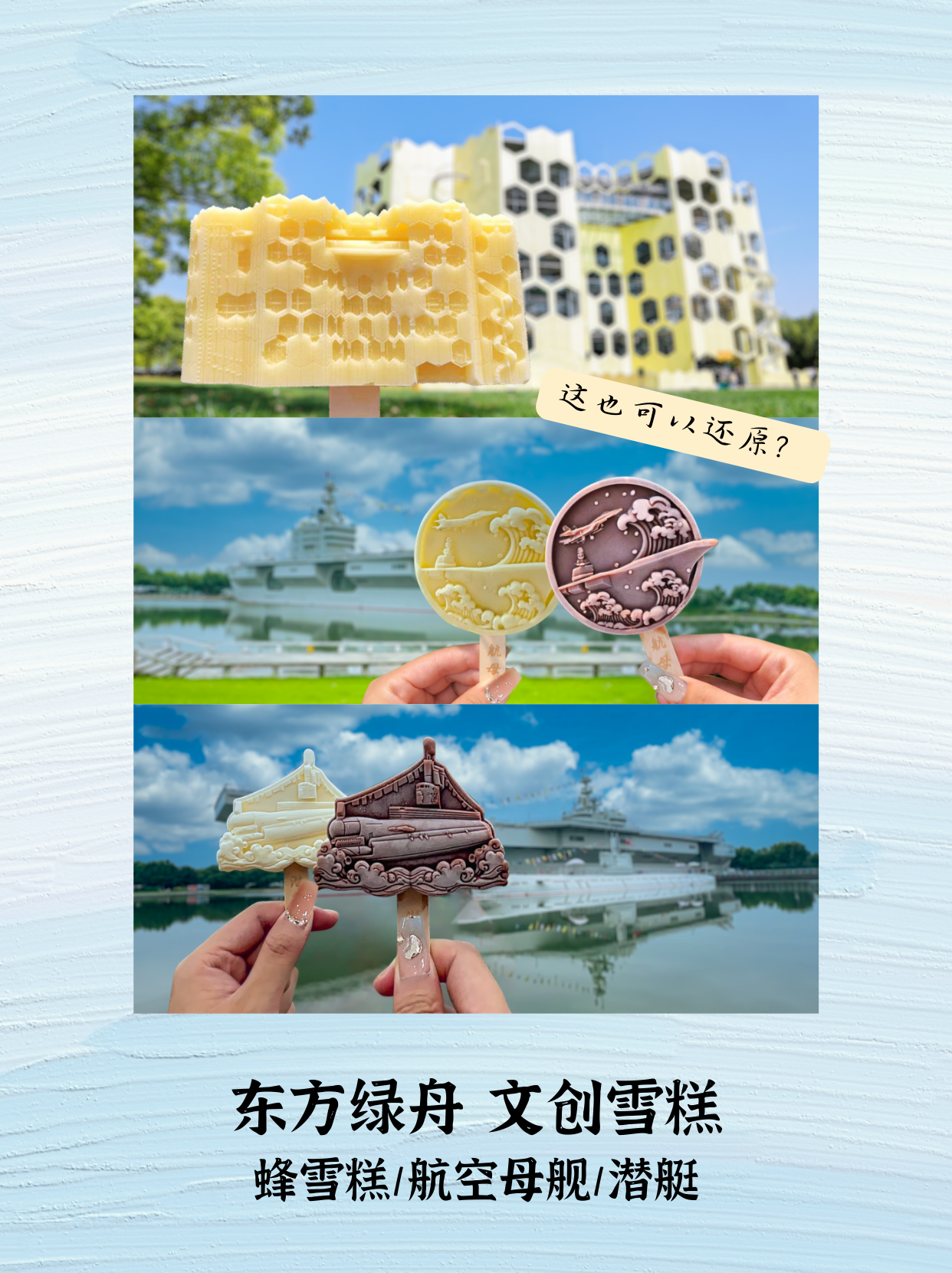 “蜂雪糕”仿制蜂巢塔,尝起来会不会有镂空口感呢?航母和潜艇雪糕,分别是航母仿真IP和退役潜艇的雪糕复制品,霸气外露,超有科技感。