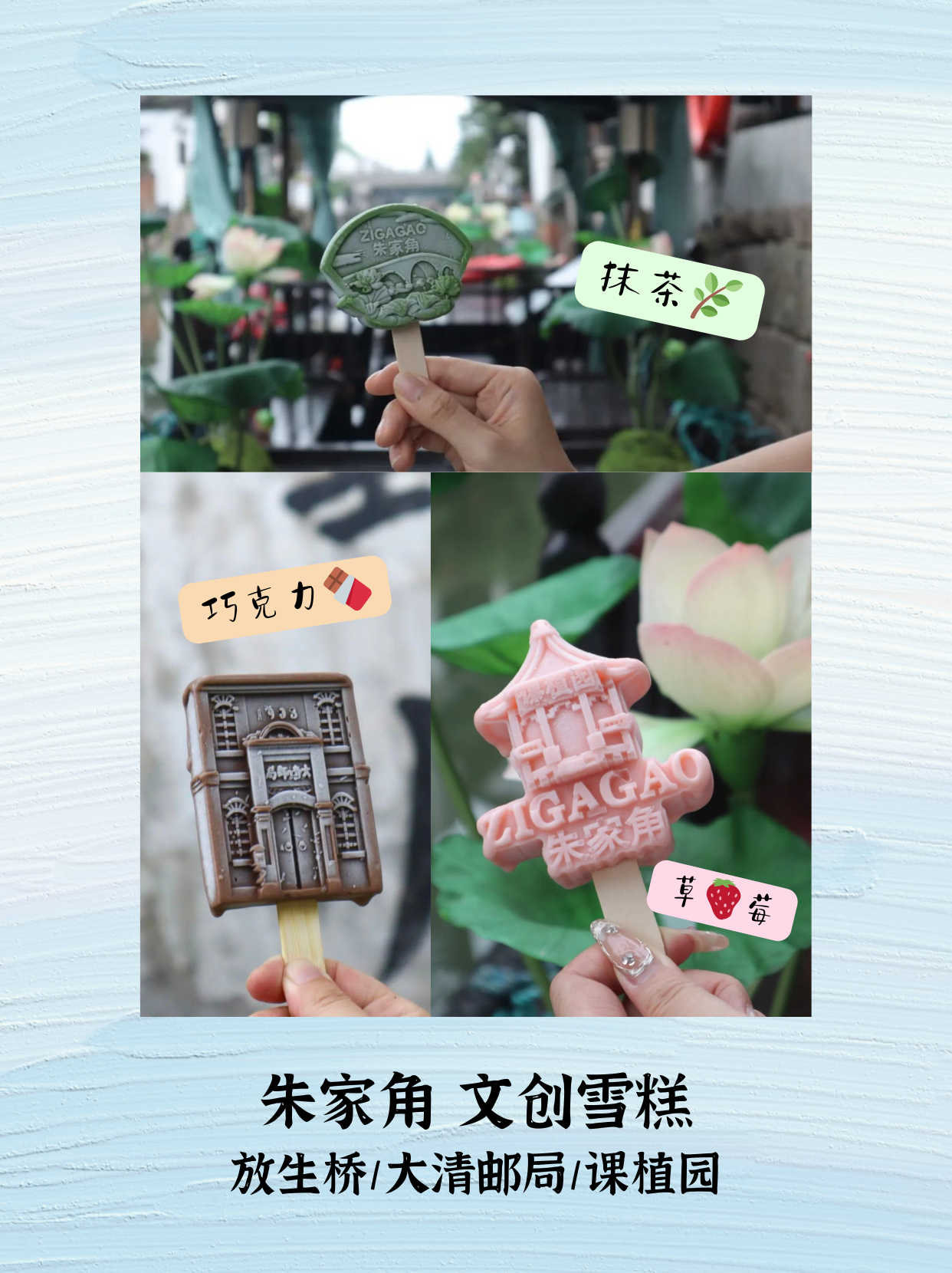 朱家角推出了放生桥、大清邮局、课植园和“I❤️朱家角”四款雪糕,消暑有糕招,江南水乡握在手心,古镇可以细细品味。