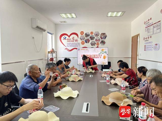 随后,志愿者组织夫妻们DIY草帽。在自由DIY过程中,大家各显身手,每一朵干花,每一条绑带,每一顶帽子都是经过精心设计过的。草帽、干花,加上不拘一格的创造力,草编与花艺的相遇,自然与艳丽的碰撞,平凡无奇的草帽经过搭配装饰,成为独一无二的潮流单品。“这里增加一朵花好看点”、“你忘了粘叶子啦”、“这朵花好看,给你一朵”。在一片欢声笑语中,大家度过了一个难忘的手作时光。