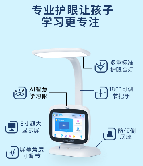 高科技护眼,硬件级蓝光护眼:比起传统平板学习机的软件护眼,禾苗智能学习机采用德国莱茵认证及国家AA级护眼台灯,柔光无蓝光危害,无可视频闪,守护好视力。