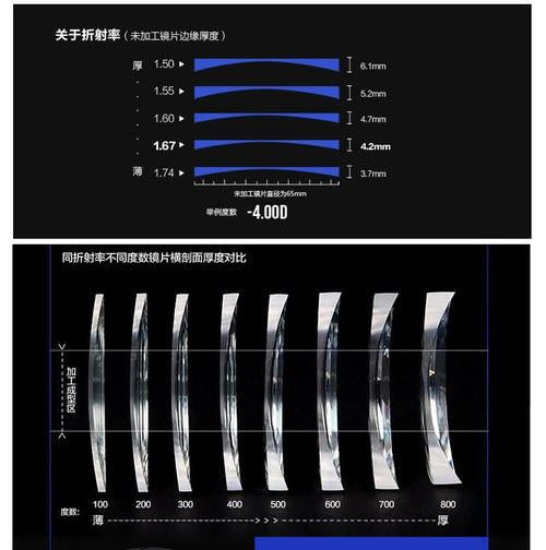 在中心厚度相同的情况下,相同度数同类材质的镜片,折射率越高,镜片边缘更薄。卖家肯定会告诉你,折射率越高镜片越好,其实镜片的折射率和镜片的硬度,镜片的透光度,镜片的清晰度,镜片的使用寿命等等没有太大联系!