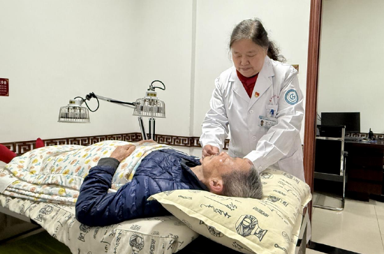 上图为大渡口区卫生“双高”人才袁忠玉为患者开展针灸理疗