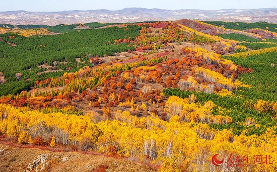关注人民网承德9月29日电 (记者李兆民)金秋时节的河北围场迎来一年中最富诗意的季节。漫山层林尽染,白桦林披上金黄外衣,微风拂过时,叶片如“金箔”般簌簌飘落,在林间铺就松软绒毯,阳光穿过树林洒下斑驳跃动的光影;远望丘陵间,柞树与枫树似火焰般灼灼燃烧,与墨绿的油松林交织成层次分明的自然画卷。