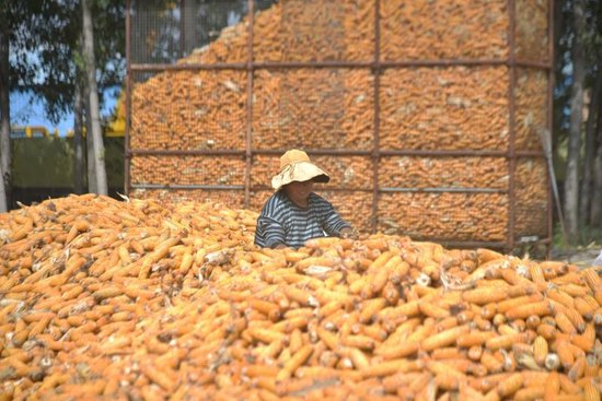 寒露时节,山东省聊城市茌平区农民抢抓农时开展蔬菜管护、玉米晾晒等工作,田间地头一派忙碌景象。(马红坤、赵玉国)