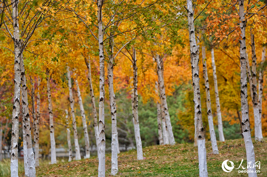 秋日里,长春南湖公园的白桦林宛如一幅重彩油画。人民网记者 李洋摄