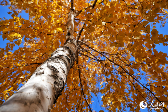 23日,长春梨花园内的白桦树呈现出迷人的金色。人民网记者 李洋摄