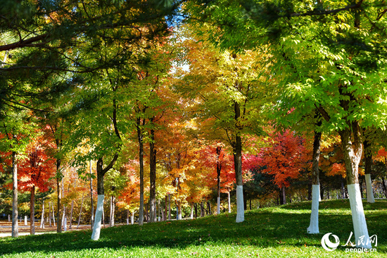 22日,长春林园中的枫树呈现出迷人的色彩。人民网记者 李洋摄