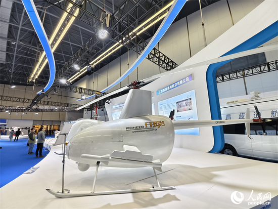 景德镇低空产业生态展整机装备区展出的国产轻型无人直升机。人民网记者 时雨摄