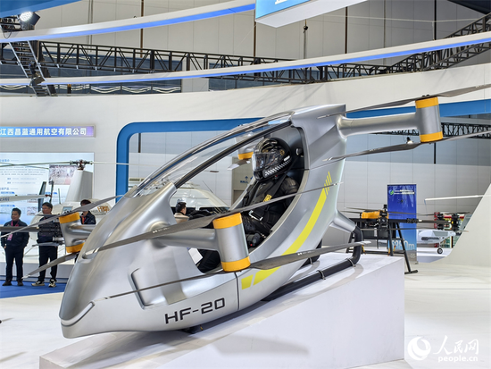 景德镇低空产业生态展上展出的超轻型运动eVTOL载人飞行器。人民网记者 时雨摄