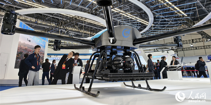 景德镇低空产业生态展上,人们正在参观一架大型多旋翼无人机。人民网记者 时雨摄