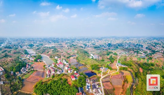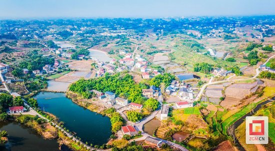 千亩田畴织锦,新绿点染初红。航拍视角下的大安区何市镇共和村,如一块被精心雕琢的翡翠,镶嵌于川南丘陵之间。村落肌理与周边千亩田畴、粼粼塘泊自然交融——规整的鱼塘如镶嵌的明镜,共同勾勒出“田居相依、产村共融”的现代田园格局。这片土地,正以最舒展的姿态,讲述着“田成方、路相通、产业兴”乡村振兴的生动故事。