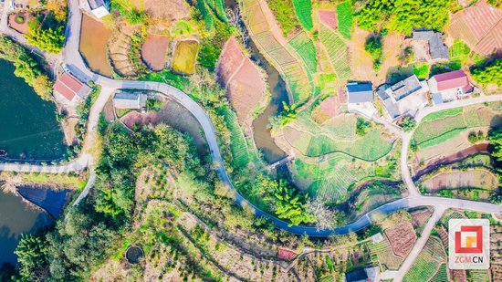 俯瞰共和村田是格,路是线,家是点。 记者 宋姿熠 摄