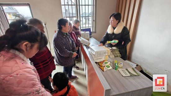 在“家美共享超市”里,村民们拿着积分手册有序兑换生活用品,超市负责人、村党支部副书记梅全丽忙得不亦乐乎。她热情地对村民说道:“看看想兑换哪些,你们自己选,按照你们的积分来兑就行,纸是12元对应的积分,牙膏是8元对应的积分。”
