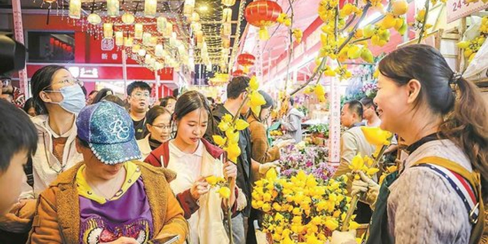 不少“广货”里蕴含着岭南民俗文化。图为广州年俗“行花街” 资料图
