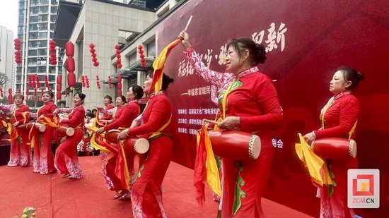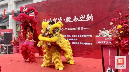 传统舞狮表演将现场气氛推向高潮。金狮腾跃,鼓点铿锵,眨眼摆尾的瑞狮与观众亲密互动。“摸一摸狮头,万事不愁;摸一摸狮身,岁岁平安”的祝福声里,富顺的文脉雅韵与烟火温情水乳交融。川剧变脸演员的脸谱瞬变引来阵阵惊呼。歌手们在演唱中融合唢呐、萨克斯等中西方乐器,带领全场合唱,腰鼓舞《信天游唱响中国梦》则舞出了新时代老百姓的精气神。