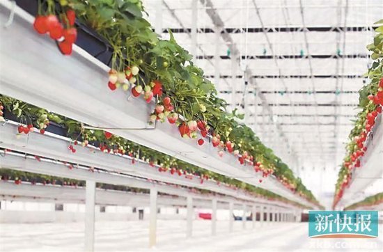 春节期间,正是草莓盛果期,白云区人和镇清河村的人和园空中草莓基地吸引了大批游客。