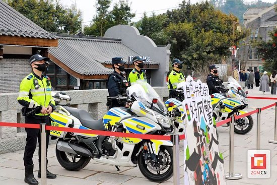 交警现场站岗执勤 记者 曾涛 摄