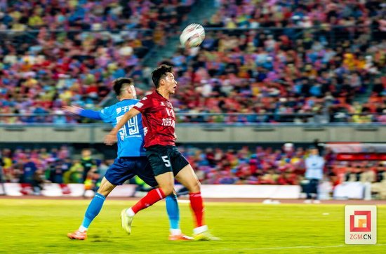 球员们在球场上奋力拼抢 记者 叶卫东 摄。