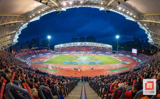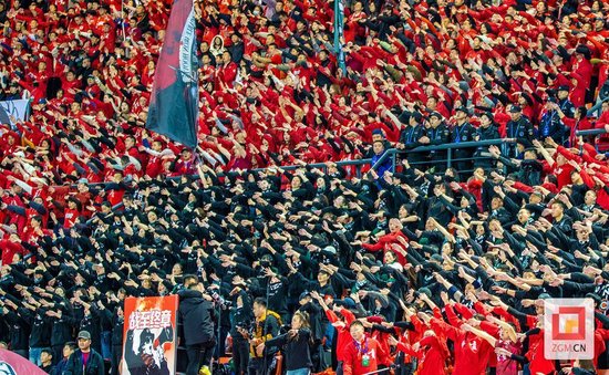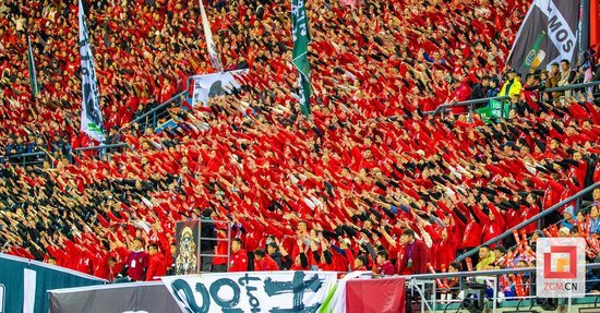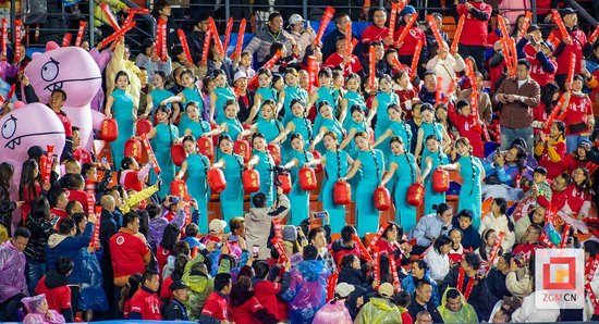球迷们齐声呐喊,人浪翻涌。 记者 叶卫东 摄