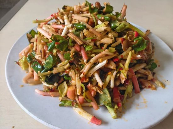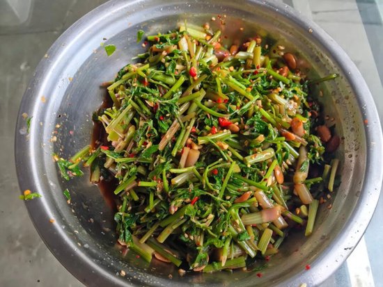 简单的烹饪,最能凸显野菜的本真滋味。村民们将洗净的野菜细细切碎,加入蒜末、辣椒、花生碎与秘制调料拌匀,一盘盘色泽鲜亮、香气扑鼻的凉拌野菜便端上餐桌。